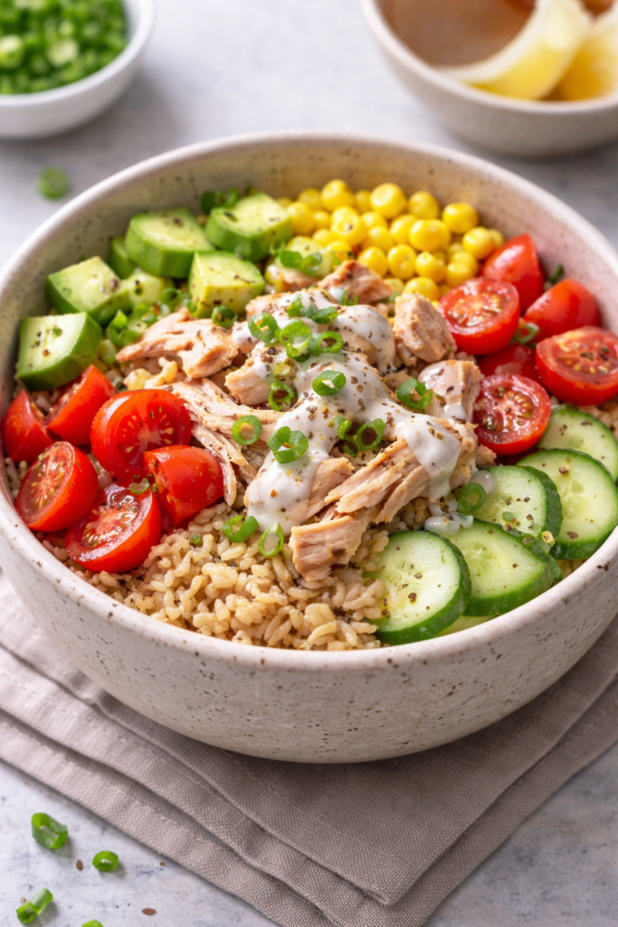 Use store-bought rotisserie chicken with rice, quinoa, or salad greens for a fast, balanced meal.